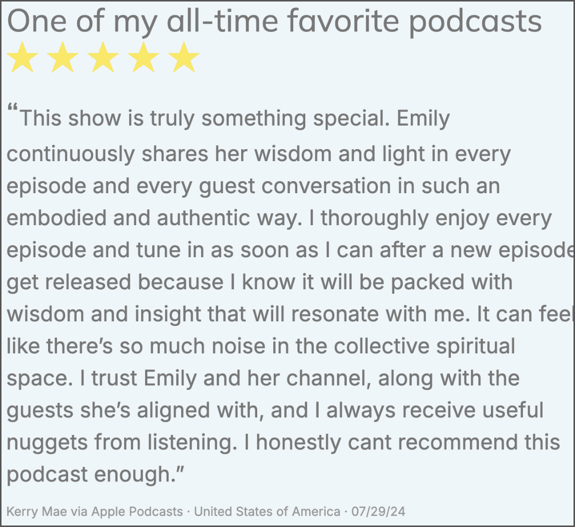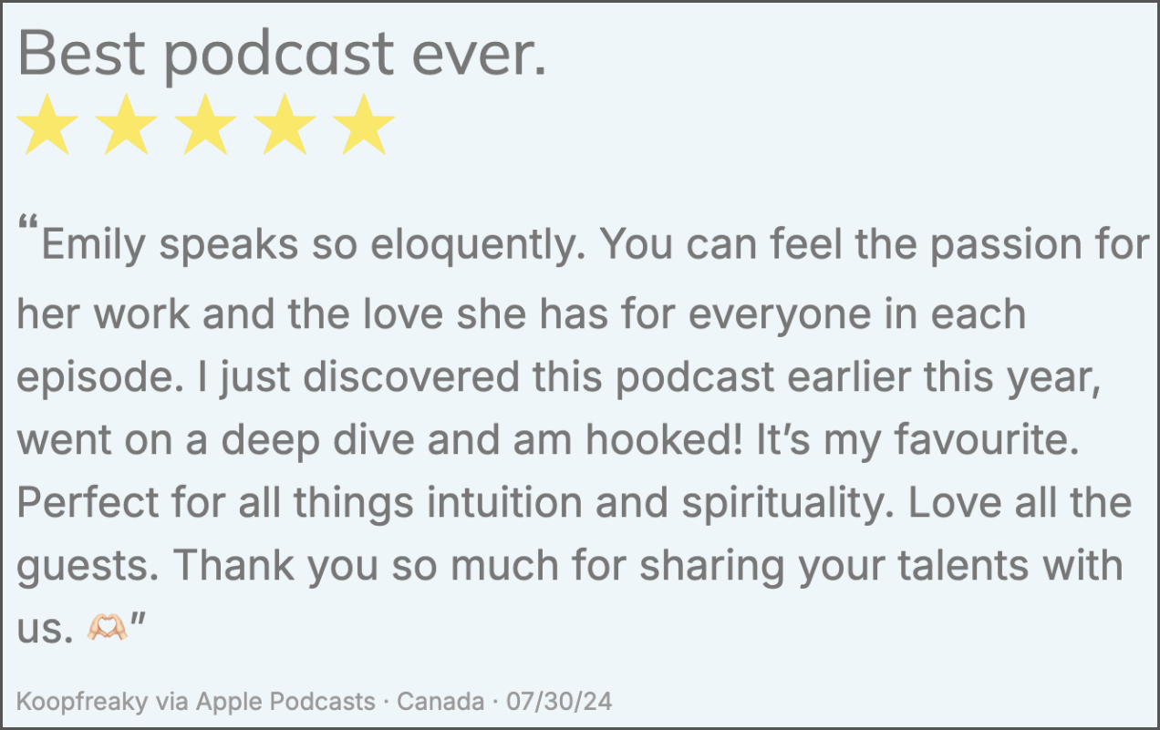 A space for curious souls and seekers of truth. Here, we dive into the magical realms of Spirit Babies, conscious conception, astrology, and exploring the New Earth frequency. Emily brings her intuitive insights to guide you through the spiritual awakening journey and explore the energies of the Age of Aquarius.
